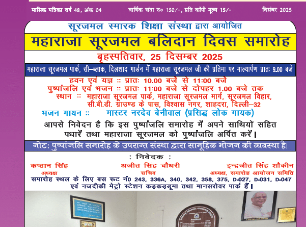 EventsLatest user November 28, 2025November 28, 2025 Maharaja Surajmal Balidan Diwas Samaroh 2025 Read More
